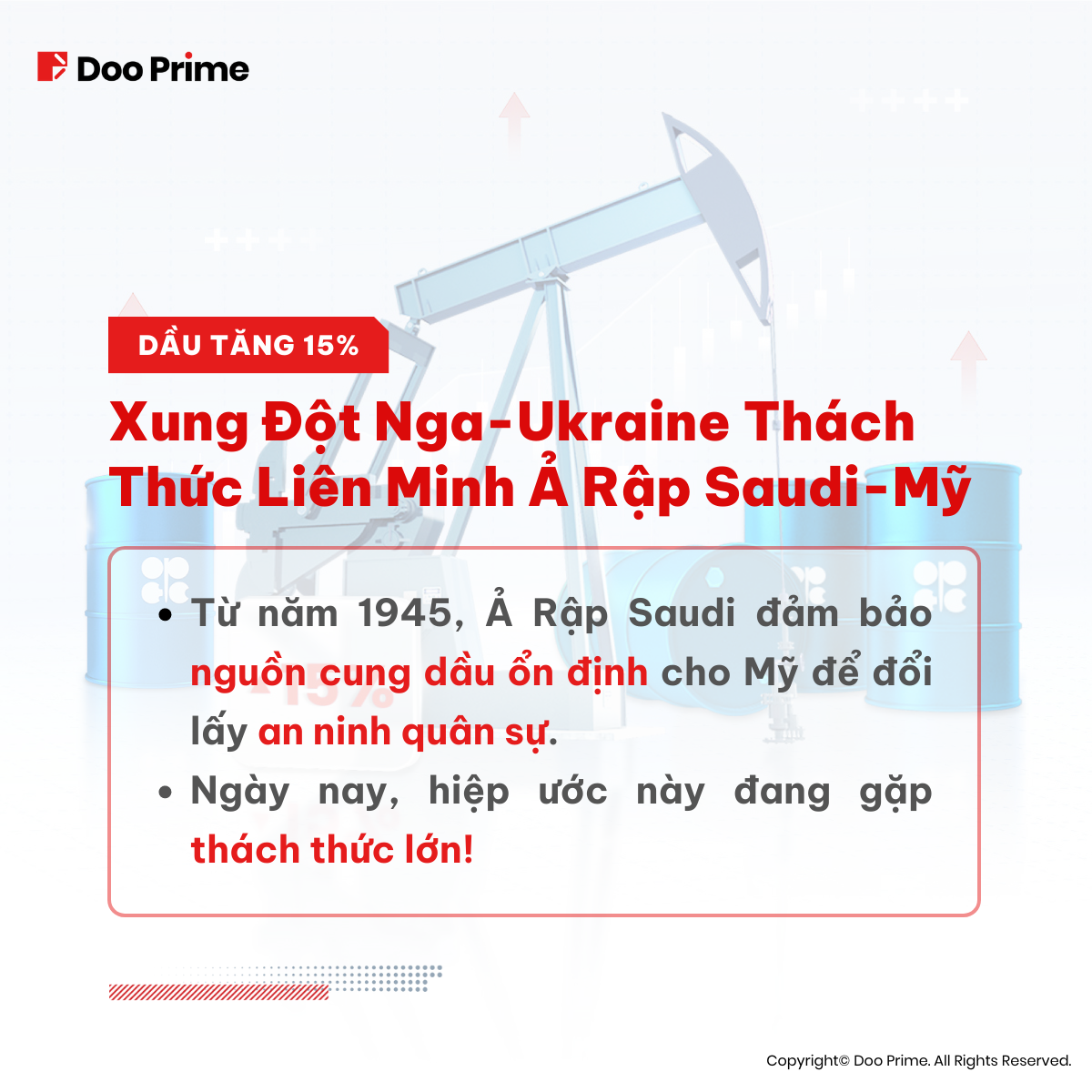 Xung đột Nga – Ukraine lay động nền tảng của nền kinh tế toàn câu và gây ra ảnh hưởng to lớn đến các mối quan hệ địa chính quan trọng. Suốt 8 năm qua, Saudi Arabia đã thỏa thuận với Mỹ để trở thành nguồn cung đáng tin cậy, đổi lại là sự bảo hộ của Mỹ trước những nguy cơ mà họ có thể sẽ gặp phải. Hiện tại, mối quan hệ liên minh gần một thế kỷ đang phải đối mặt với một thử thách lớn.