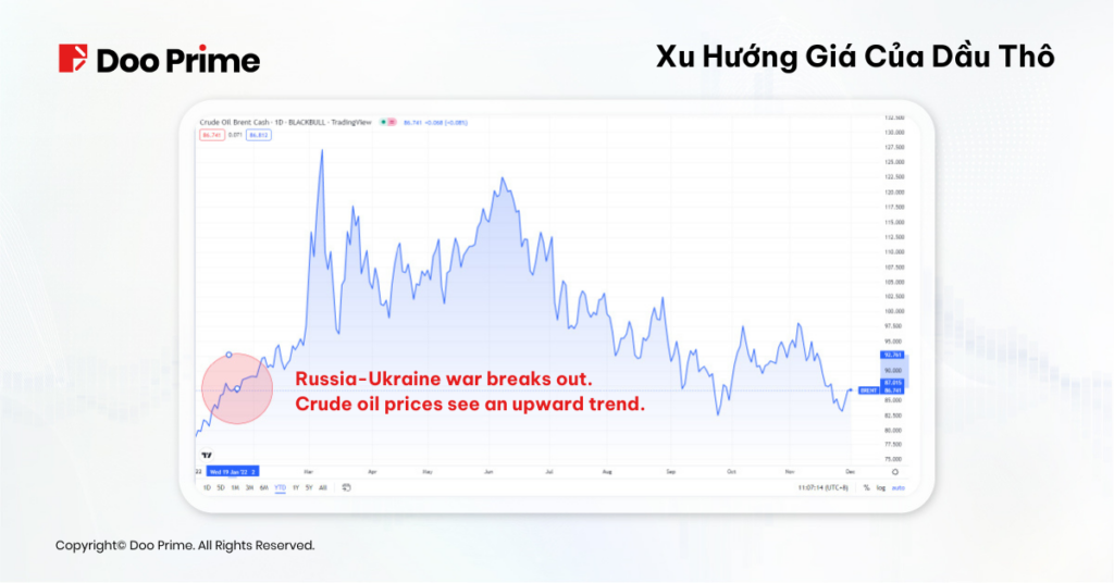 Là một quốc đảo với nguồn tài nguyên hạn chế, Nhật Bản phụ thuộc nhiều vào các mặt hàng nhập khẩu từ bên ngoài, đặc biệt là dầu thô – vốn được xem là một nguồn tài nguyên chiến lược quan trọng. Tuy nhiên, trong năm nay, giá dầu thô đã tăng vọt do ảnh hưởng từ cuộc chiến giữa Nga-Ukraine, cũng như thực tế rằng dầu thô thường được tính bằng đồng đô la Mỹ.