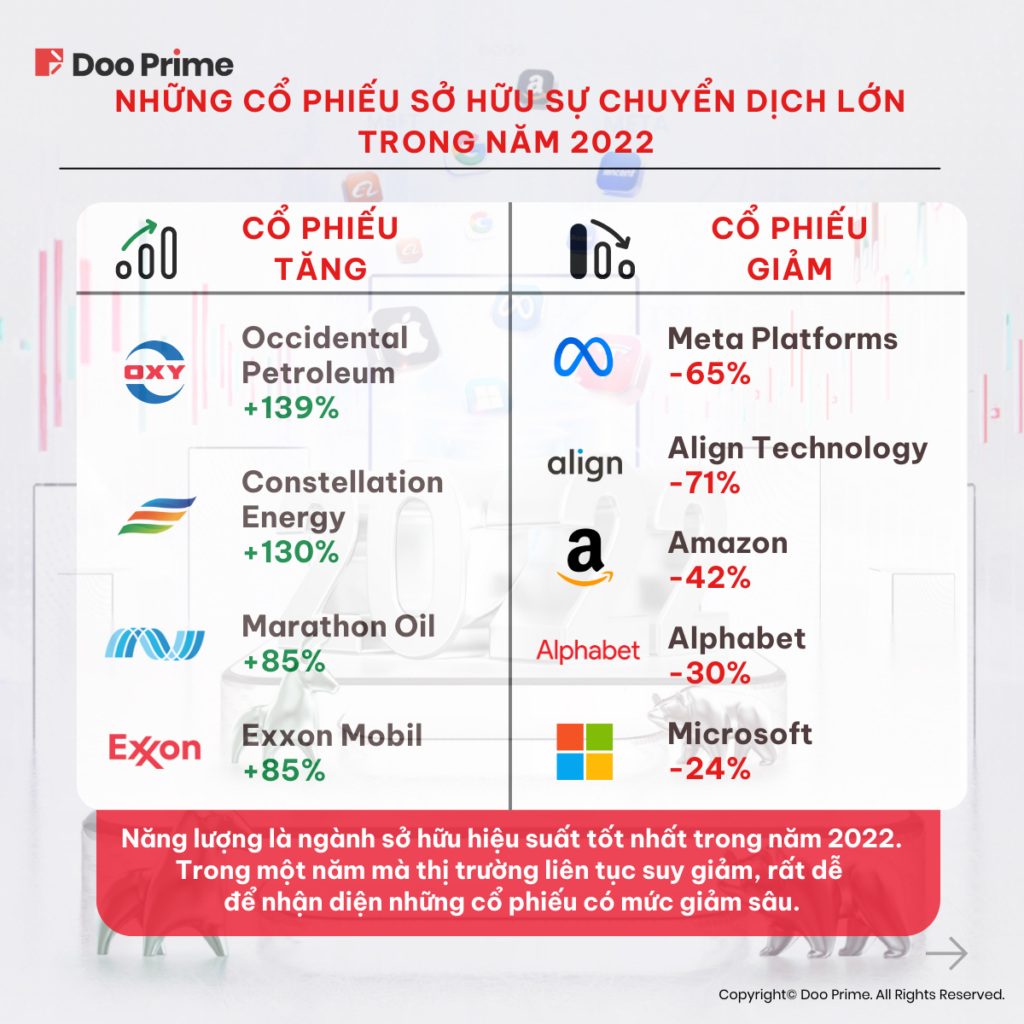 Những Cổ Phiếu Sở Hữu Sự Chuyển Dịch Lớn Trong Năm 2022